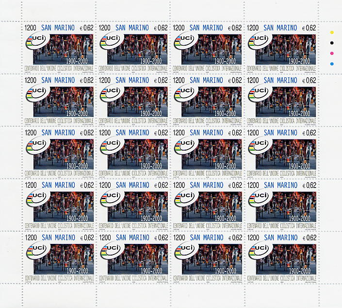 | Un valore da L. 1.200 (0,62 euro) in fogli di 20 esemplari |